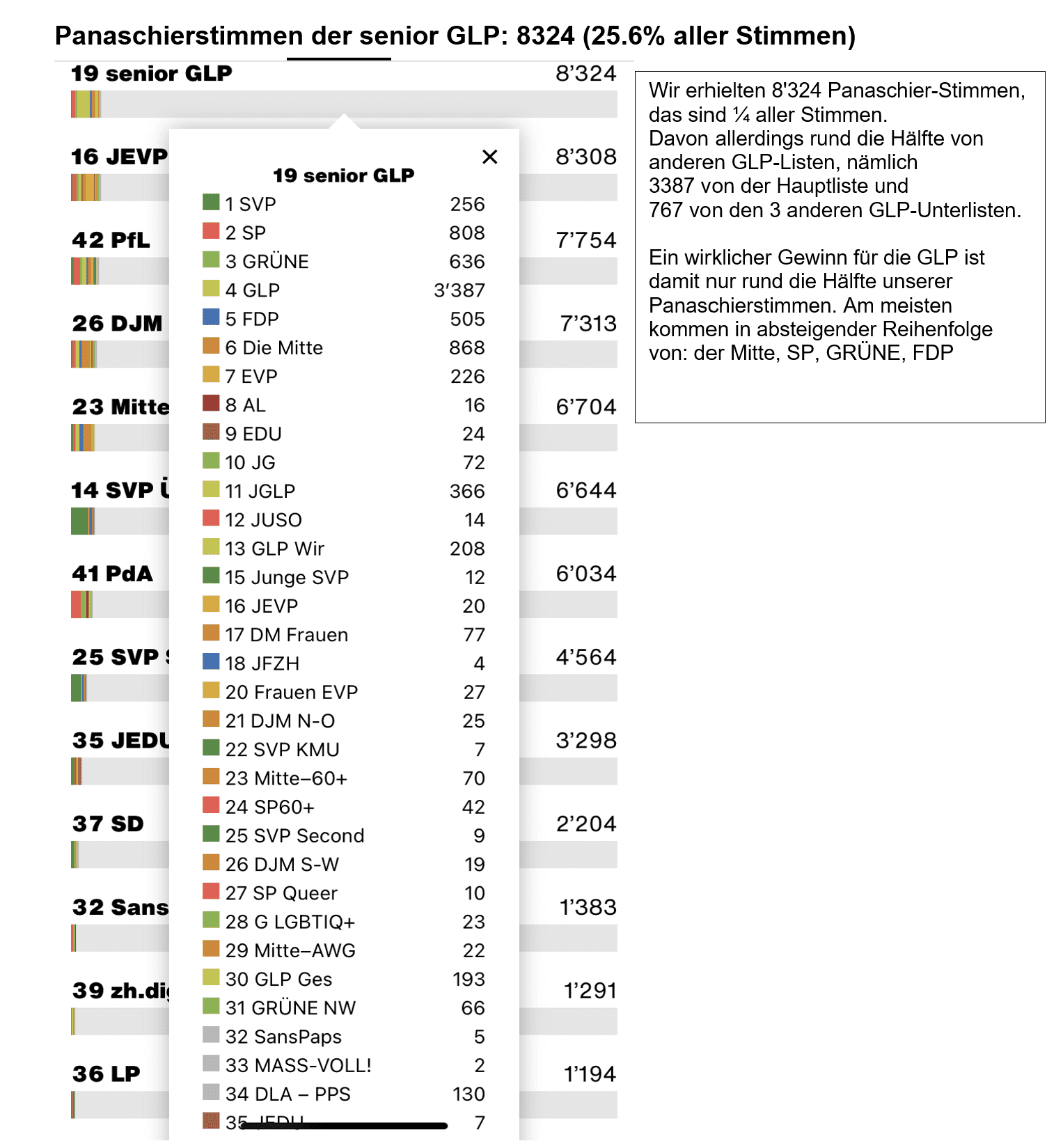 Das Ergebnis unserer Unterliste «senior GLP» bei den Nationalratswahlen am 22.10.2023 war nicht gerade berauschend. Wir haben aber immerhin 32’507 Stimmen erhalten. Zwar weniger als 2019, aber es hat doch einiges gebracht für die Listengruppe der Grünliberalen. Ausserdem waren die Wahlen Gratiswerbung für die senior GLP und wir haben Spass gehabt und vieles gelernt.